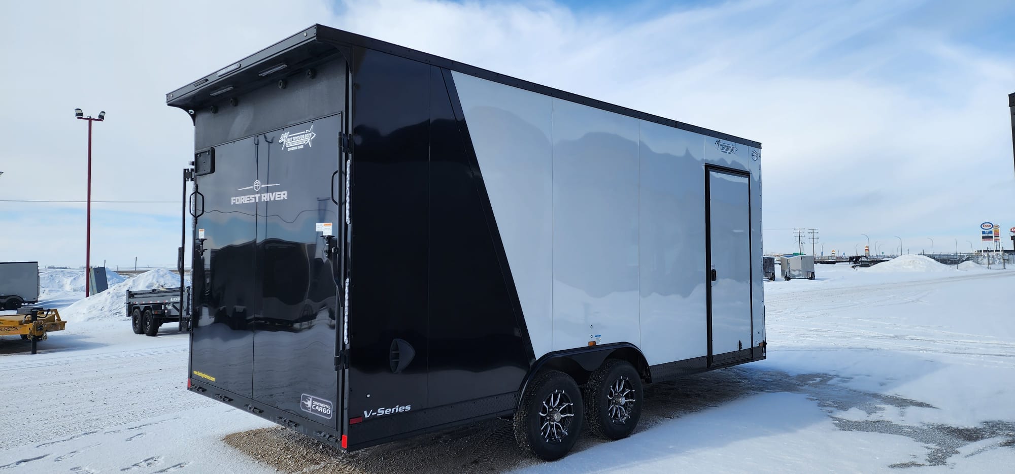 V-Series trailers range in size from a 5’ x 8’ single axle to a 8’ x 20’ tandem axle model. They feature an 18" front wedge for extra storage space and easier towing. The 5’ - 6’ wide models offer a standard payload capacity from 1,200 - 5,400 lb. while the 7’ - 8’ wide models offer a capacity of 1,900 - 3,900 lb. Double Barn doors are the standard rear door for the V-Series cargo trailers with an optional ramp door available.